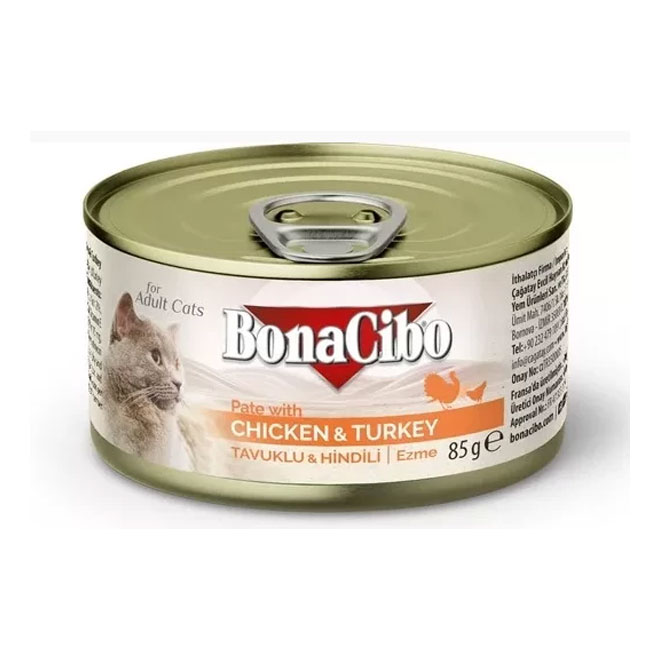 Bonacibo’nun lezzetli ve besleyici kedi maması, BonaCibo Ezme Tavuklu & Hindili Yetişkin Yaş Kedi Maması 85gr ile kedileriniz için özel bir lezzet sunuyor.